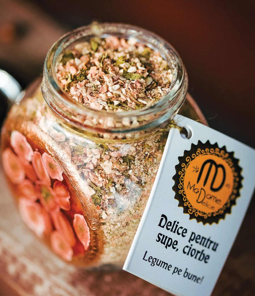 În schimb, marea lor dragoste au fost dintotdeauna condimentele din legumele deshidrate. Cu toate că este multă muncă și multă alergătură, satisfacția lucrului bine făcut îi motivează pe cei doi tineri: „Primele noastre produse de suflet sunt condimentele din legume deshidratate! «Delice» sunt de fapt baza pentru mâncăruri obținute din legume deshidratate în două amestecuri, unul pentru supe, ciorbe și altul pentru fripturi și tocănițe. Legumele le achiziționăm de la producătorii locali pe care îi încurajăm să producă fără chimicale, cât mai aproape de natură, le uscăm, le măcinăm și combinăm cele două mixuri. Le promovăm cu succes în pachetele noastre cadou împreună cu dulceața de ardei iuți – un produs de care suntem mândri. Încercăm diferite modalități de prezentare, avem și produse ambalate în borcane pictate manual, unicat.“